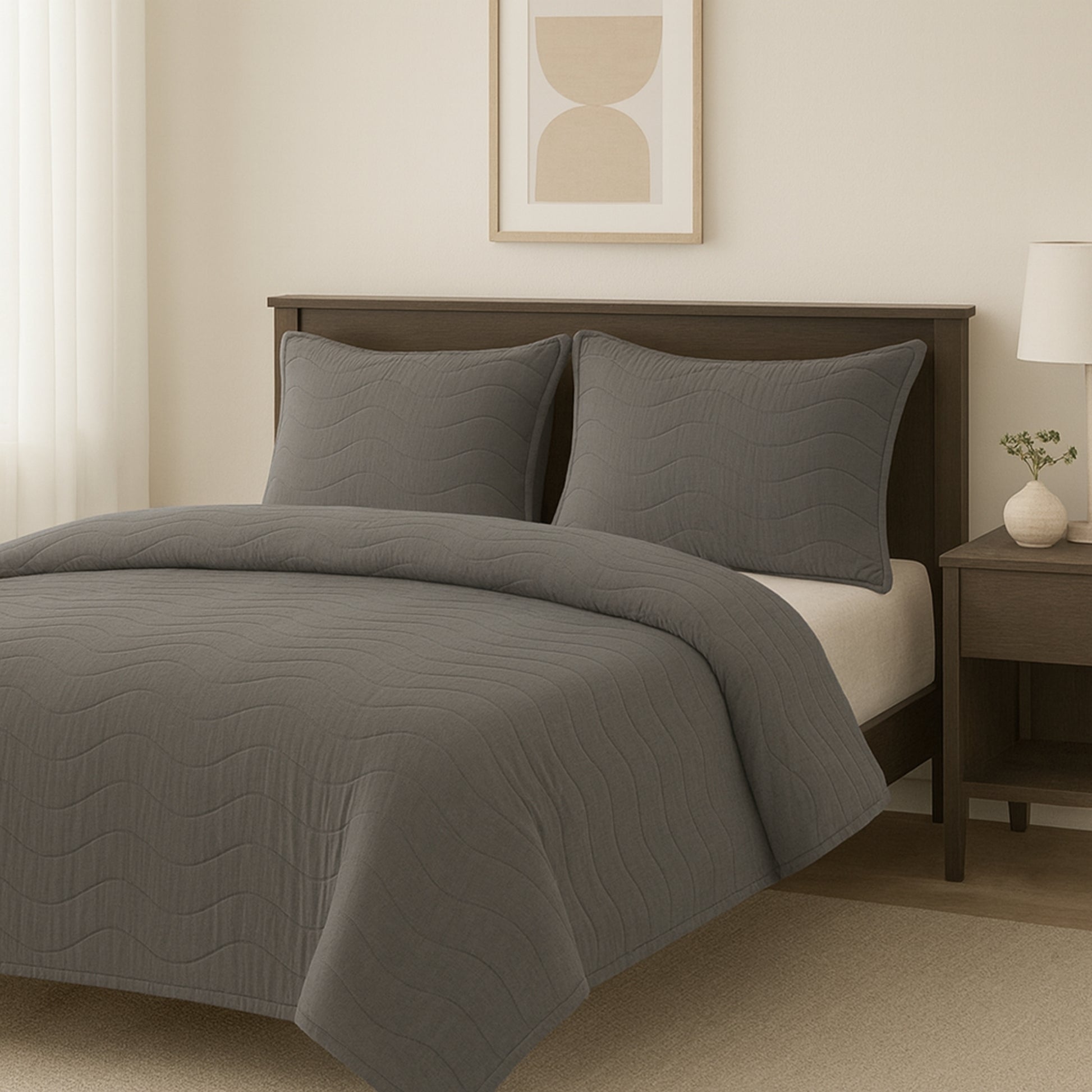 Add modern elegance with the Charcoal Grey Heritage Luxe Bedsheet. Crafted from 100% pure cotton with a 300 TC finish, this King-size set offers silky softness, breathability, and timeless style.