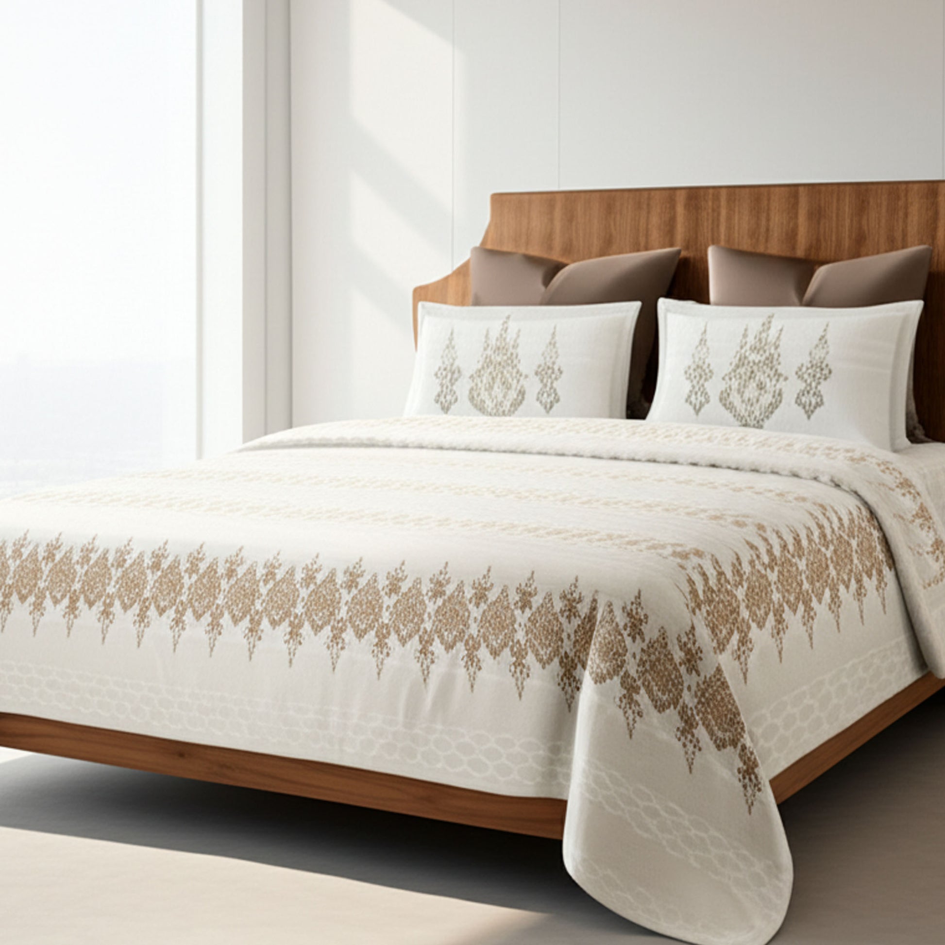 Add warmth and elegance with the Harmony Fusion Classic Charm Golden Sand Bedsheet. 100% cotton, 210 TC, King-size, soft and stylish.