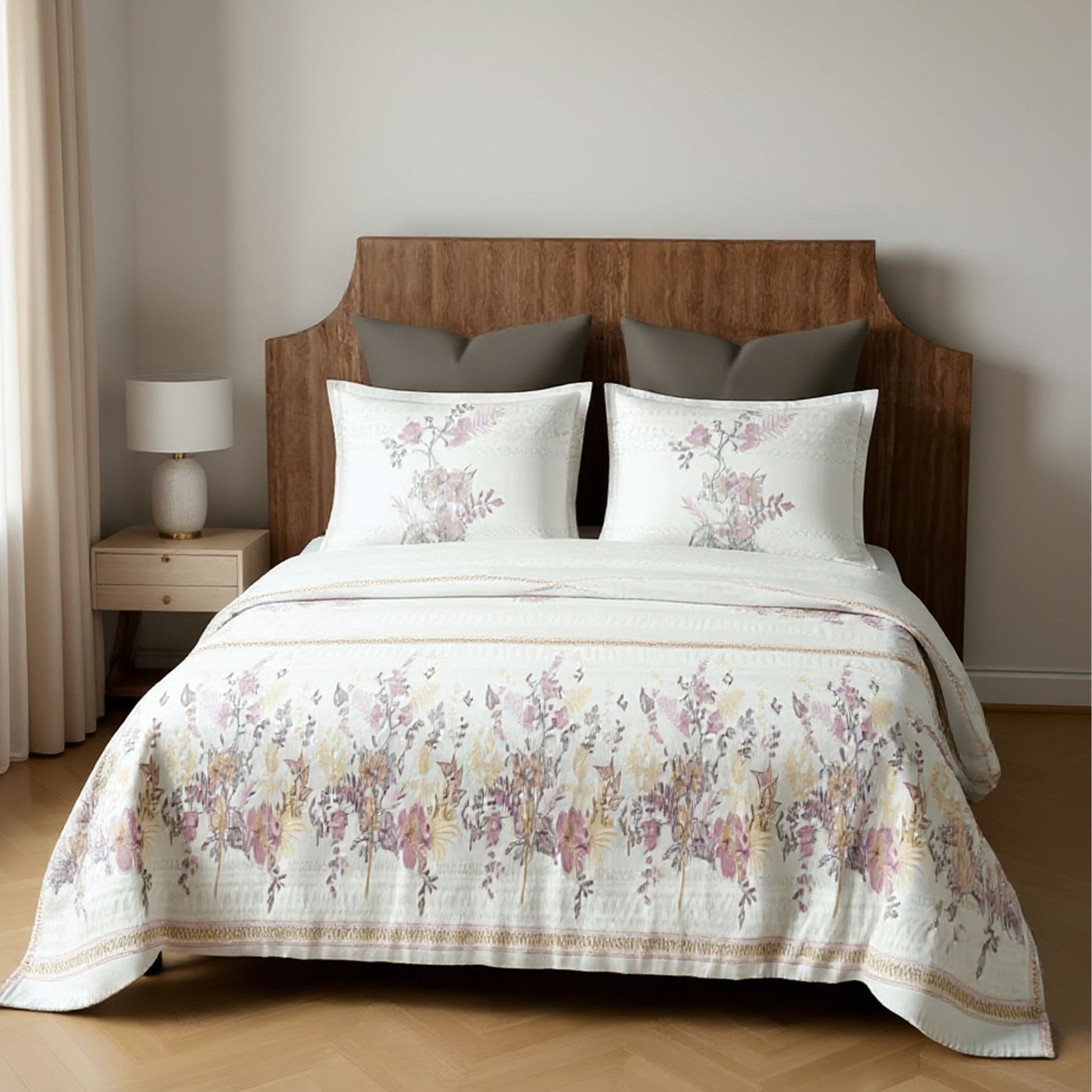 Harmony Fusion Pure Cotton Floral Pink Printed Bedsheet