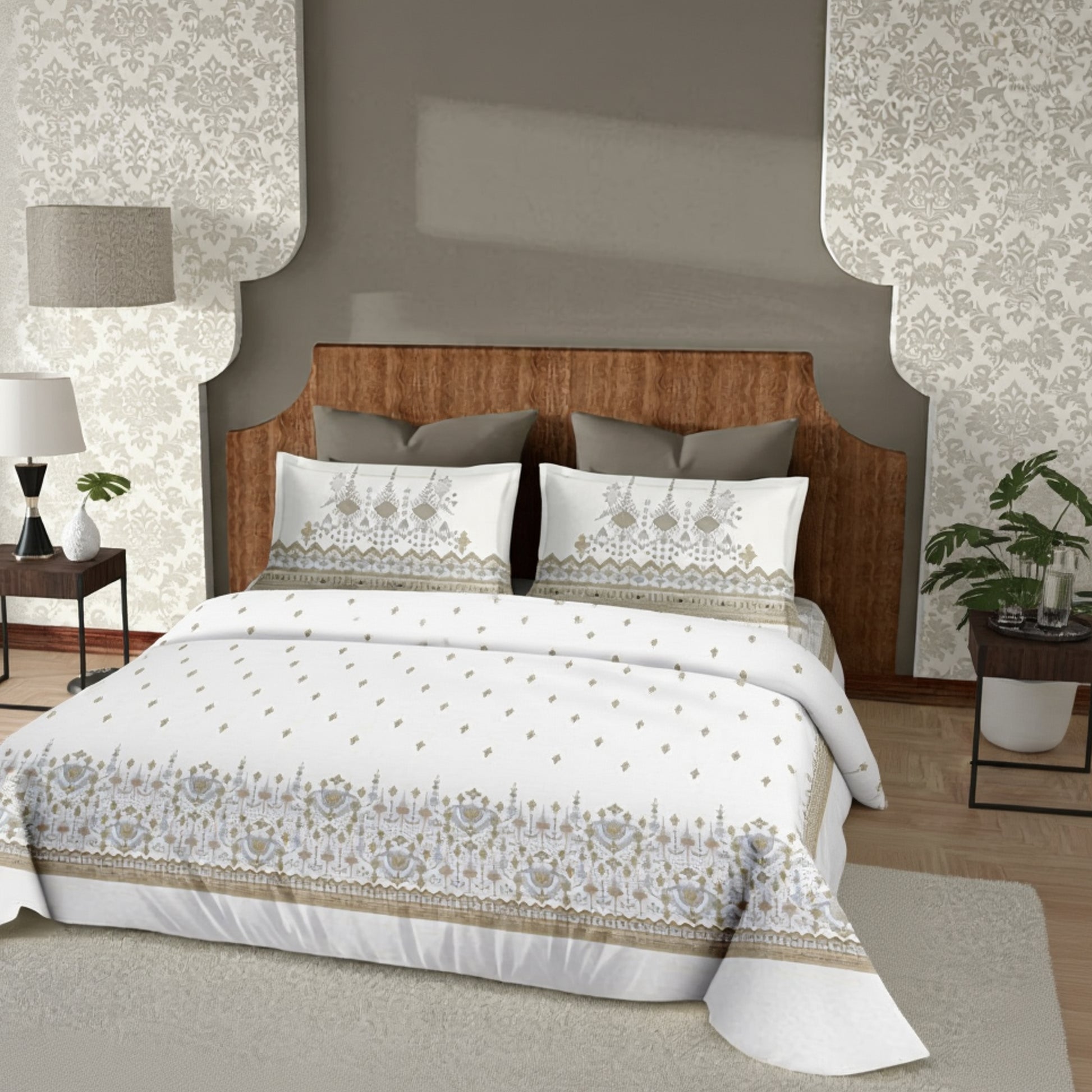 Harmony Fusion Pure Cotton geometric motif golden brown Printed Bedsheet