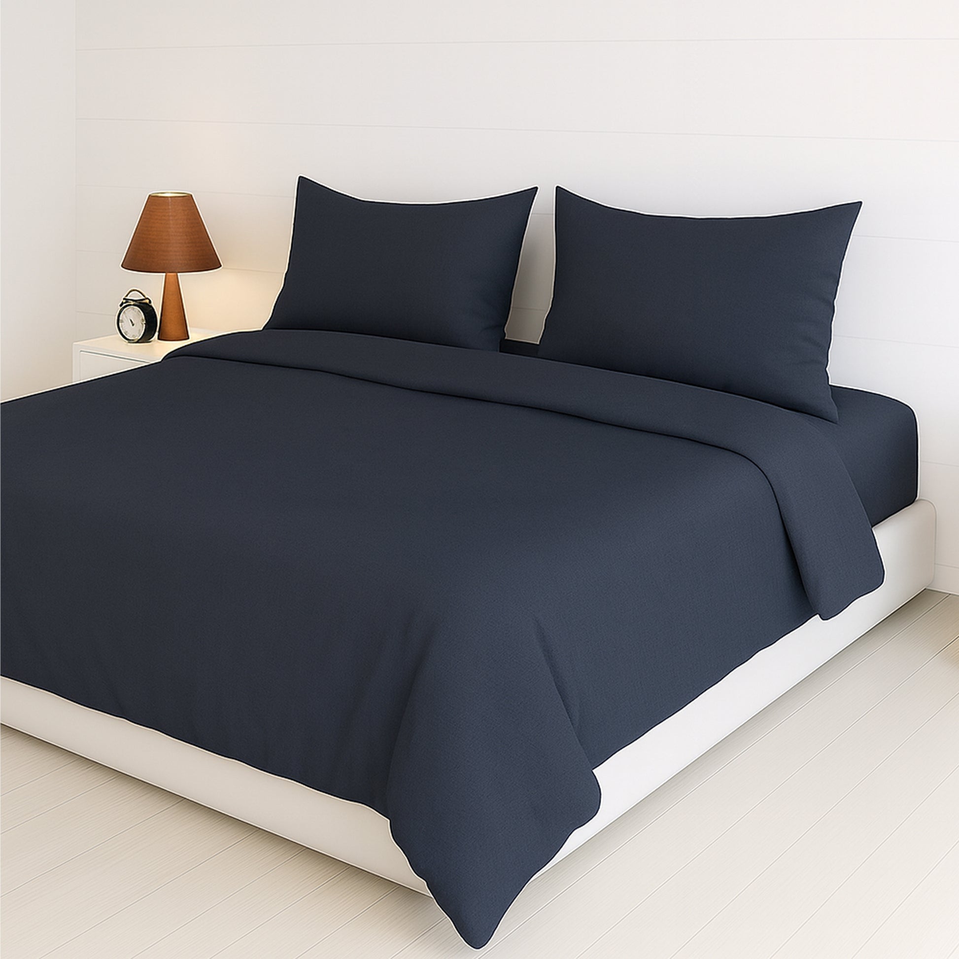 Discover understated luxury with the Midnight Ash Heritage Luxe Pure Cotton Bedsheet. Crafted from 100% pure cotton with a 300 thread count, this King-size bedsheet (108"x108") delivers silky softness, breathability, and lasting durability. The elegant Midnight Ash shade creates a soothing and versatile look that enhances any bedroom décor. Gentle on the skin and easy to maintain, this 3-piece set includes 1 bedsheet and 2 pillow covers, offering both comfort and refined style.