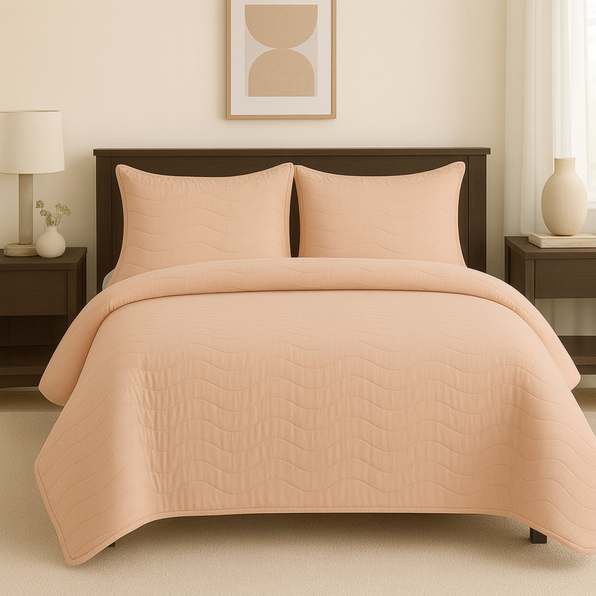 Bring a soft, fresh vibe to your space with the Peach Vistara Dyed Microfiber Bedcover Set. Made from premium 200 GSM microfiber, this 3-piece set offers cozy comfort and style.